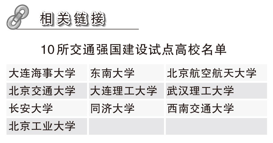 2019年9月,中共中央、国务院印发《交通强国建设纲要》,明确到本世纪中叶,全面建成人民满意、保障有力、世界前列的交通强国。自交通运输部2019年底启动交通强国建设试点工作以来,包括北京工业大学在内,目前有10所高校正式纳入交通强国试点名单。