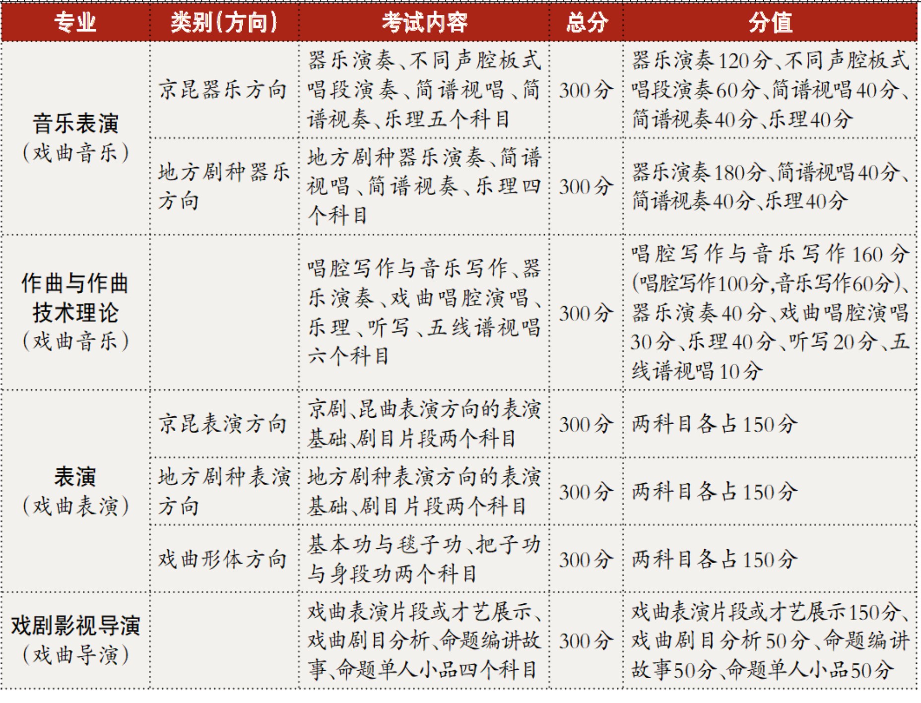 戏曲类省际联考科目及分值