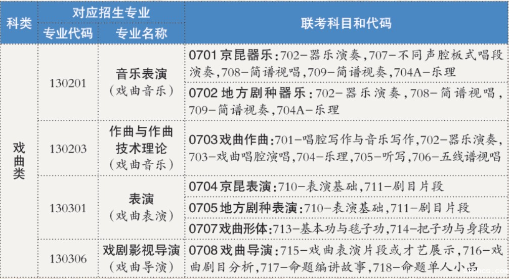 以音乐表演(戏曲音乐)专业为例,该专业下设京昆器乐方向和地方剧种器乐方向,这两个方向都要考核器乐演奏、简谱视唱、简谱视奏和乐理。京昆器乐方向还需要考核不同声腔板式唱段演奏。