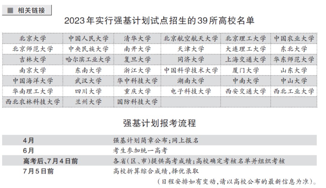 强基计划实行计划单列,单独报名,单独考核,单独录取,录取安排在本科提前批次录取前进行,每名考生只能报考一所高校。