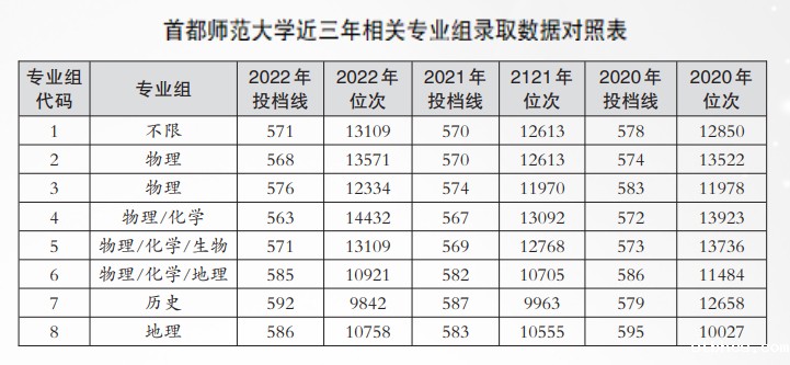 2020—2022年首都师范大学录取平均分分别是580分、575分、577分;平均位次分别是12522名、11785名、12260名。该校近三年录取平均分、平均位次在京属非211高校中名列前茅,录取阶段没有出现补录现象,这些数据反映出该校招录情况很好。