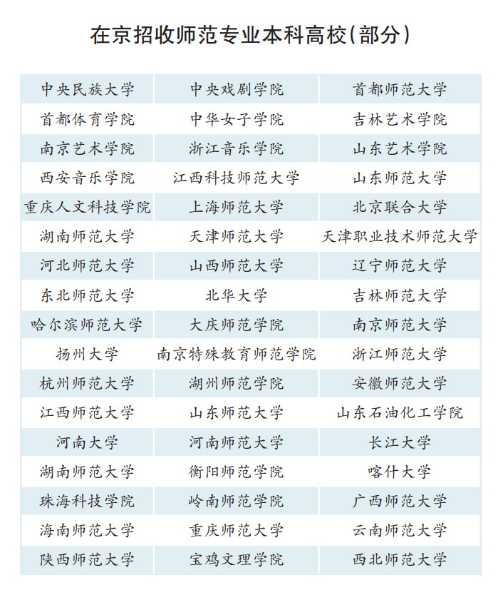 目前,全国开设师范类专业的本科院校有一百余所,面向北京招生的共55所。在招生院校和省级招生主管部门公布的招生计划中,如果该专业是师范类,在其专业名称后一般会注明“师范”,比如数学与应用数学(师范)、汉语言文学(师范)、英语(师范)等。