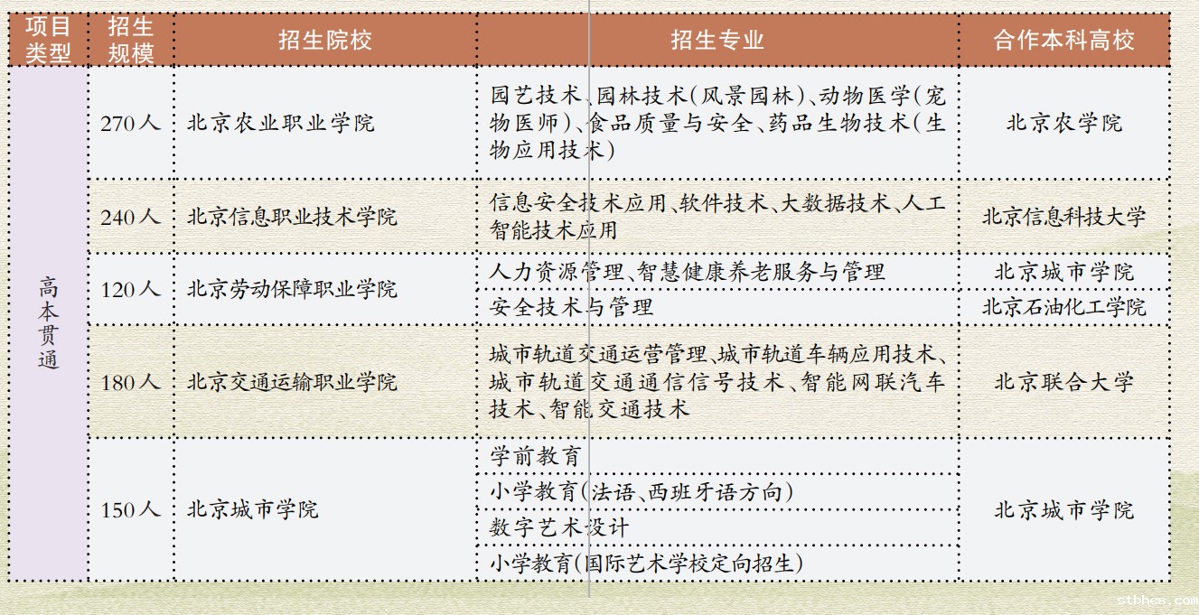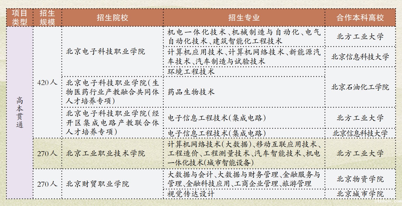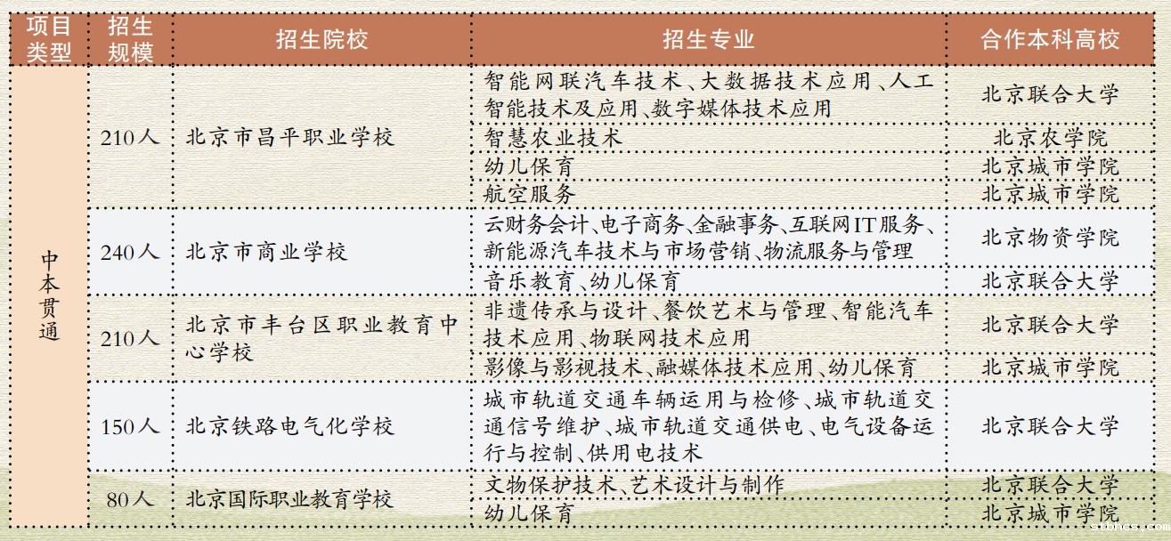2023年北京市高端技术技能人才贯通培养招生计划表