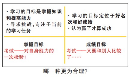 请大家思考,哪一种成就目标更可能保持长久的好成绩,而不受到某一次成绩的影响,保持积极的心态呢?相信聪明的你已经找到了答案。
