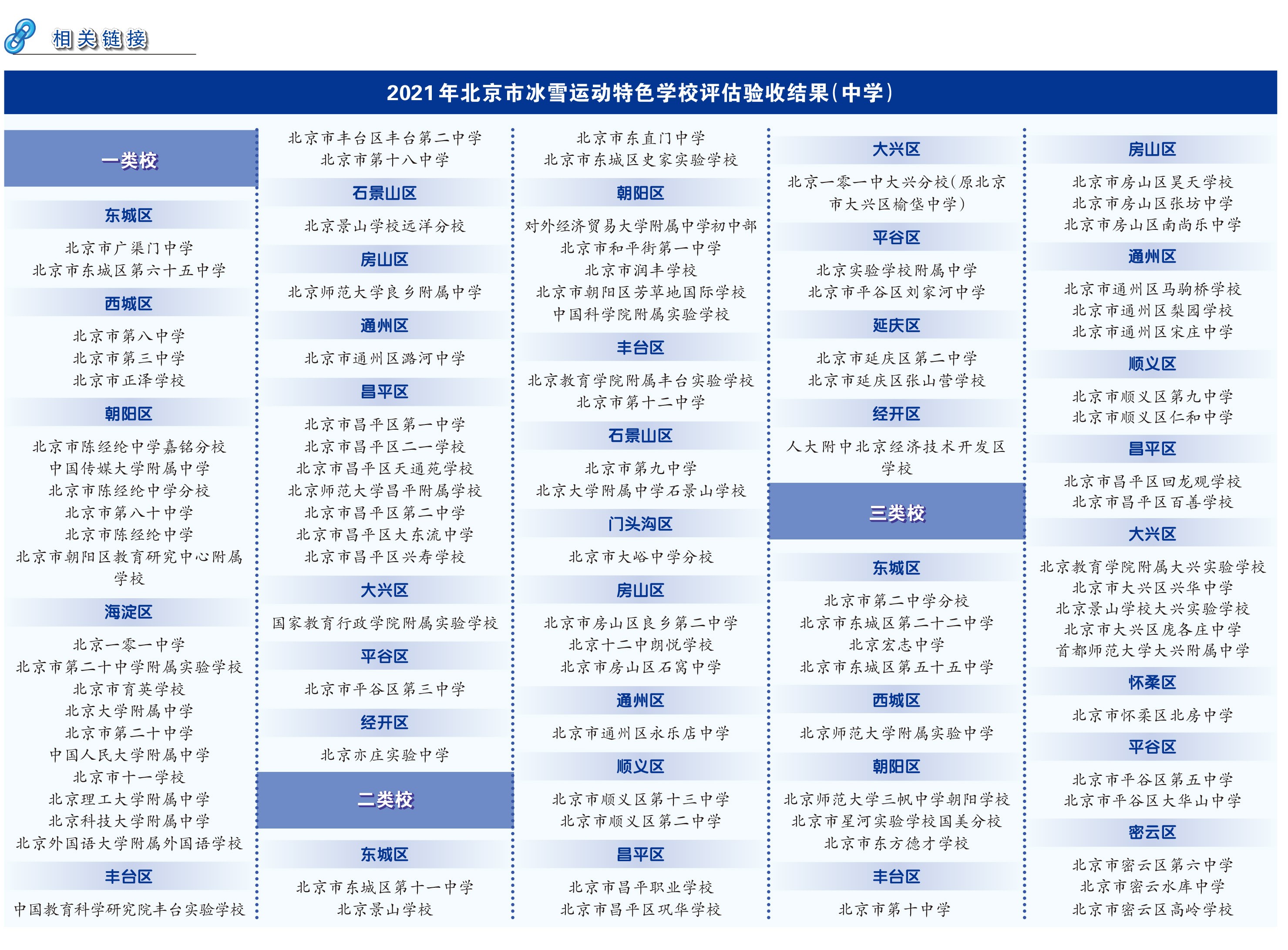 北京考试报讯(记者 安京京) 北京市教委日前对外发布2021年北京市冰雪运动特色学校及奥林匹克教育示范学校评估认定结果。