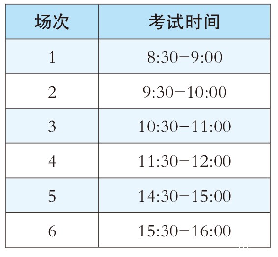 英语听说机考每天最多安排6场,每场考试时间约30分钟。