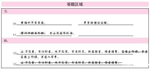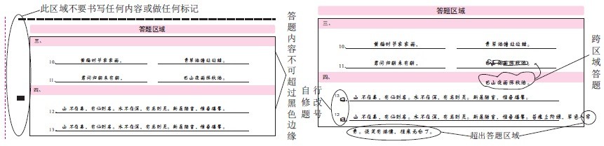 6、主观题用黑色字迹的签字笔作答(切勿使用其它颜色的签字笔);答题字迹不可压在黑色框线上,更不可写在框线外;修改时须用黑色签字笔在原作答上逐字逐行画一道线删除掉,  然后在其后方或下方重新作答。修改时不得使用涂改液或胶带纸,否则作答无效。如下图所示: