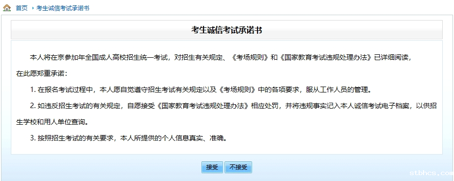 2.如点击“接受”则表示接受承诺书中相关要求,进入“处罚规定”页面并仔细阅读。