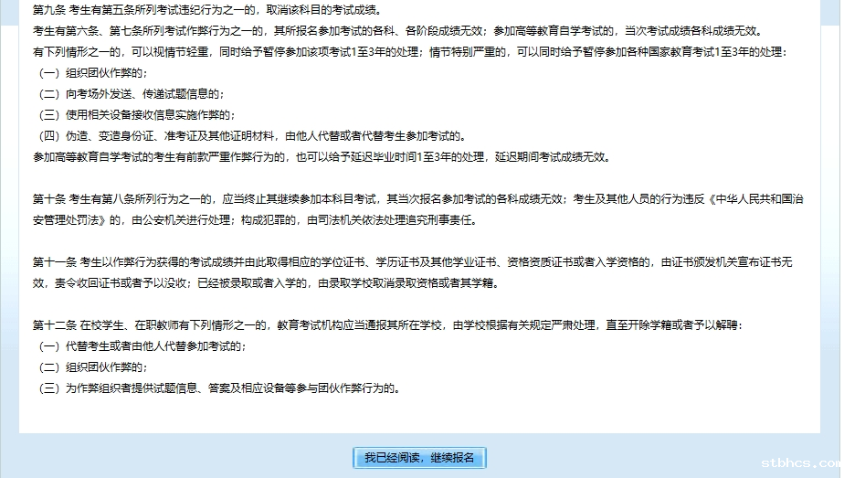 3.点击“我已经阅读,继续报名”,进入“报名须知” 页面并仔细阅读。