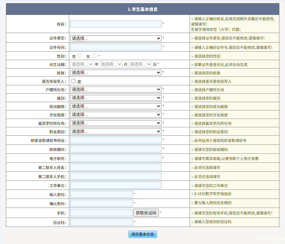 注意1:证件类型,证件号,手机号提交后无法修改。姓名在后续完成照片采集后无法修改。请谨慎填写!