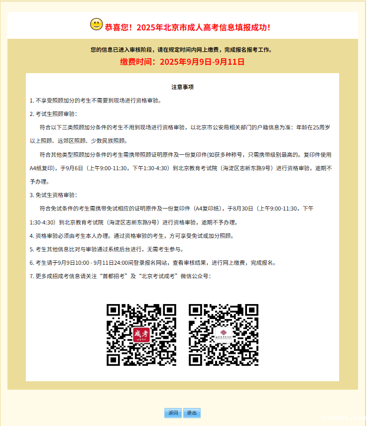 6. 考生请于9月9日10:00至9月11日24:00间登录报名网站,查看审核结果,进行网上缴费,完成报名。