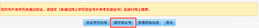 3)专升本学历验证不通过的考生需在网上填写《未通过网上学历验证专升本考生保证书》后方可缴费。