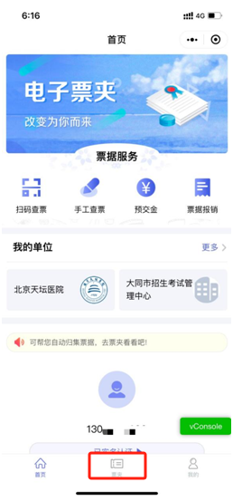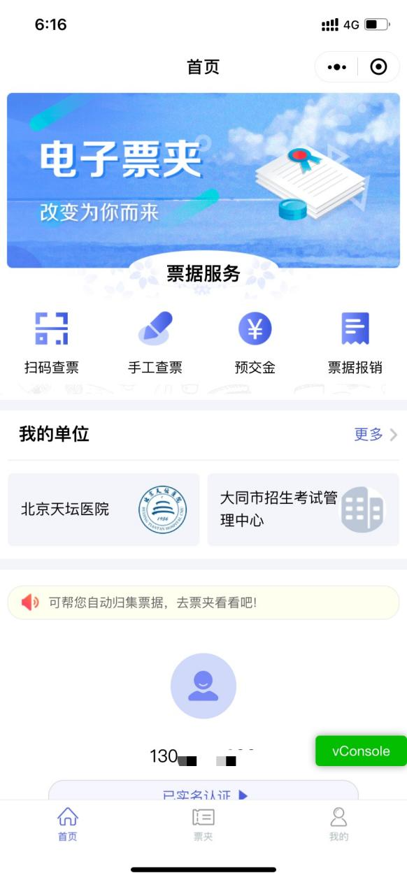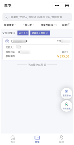 票夹页展示已保存至电子票夹的票据,点击票据可查看该票据详情。